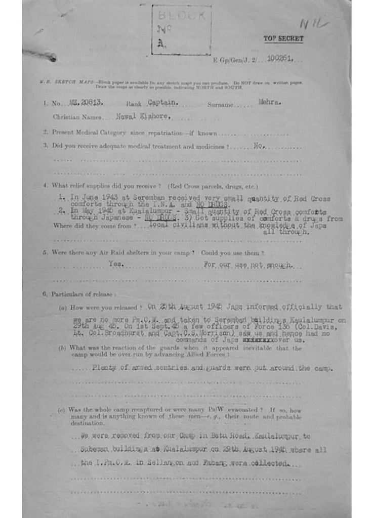 Permission was given to photograph the first page only of the Liberation Questionnaires and we could use these photographs on the COFEPOW website on the understanding that we didn’t accept any payment for viewing them.