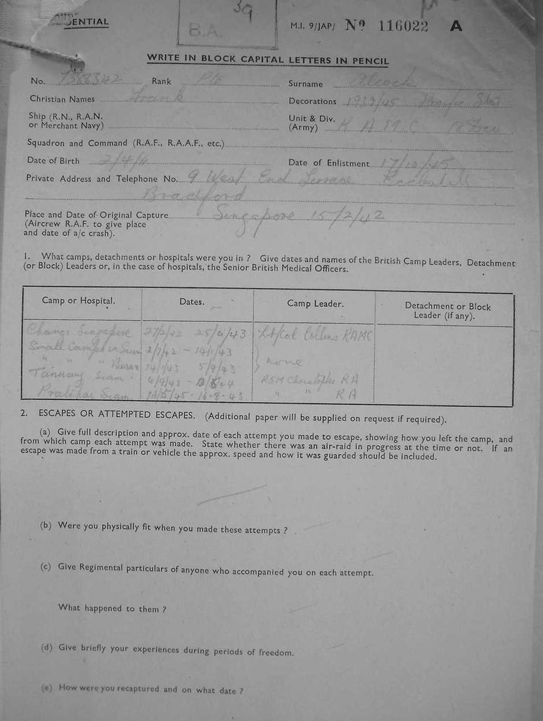 Permission was given to photograph the first page only of the Liberation Questionnaires and we could use these photographs on the COFEPOW website on the understanding that we didn’t accept any payment for viewing them.