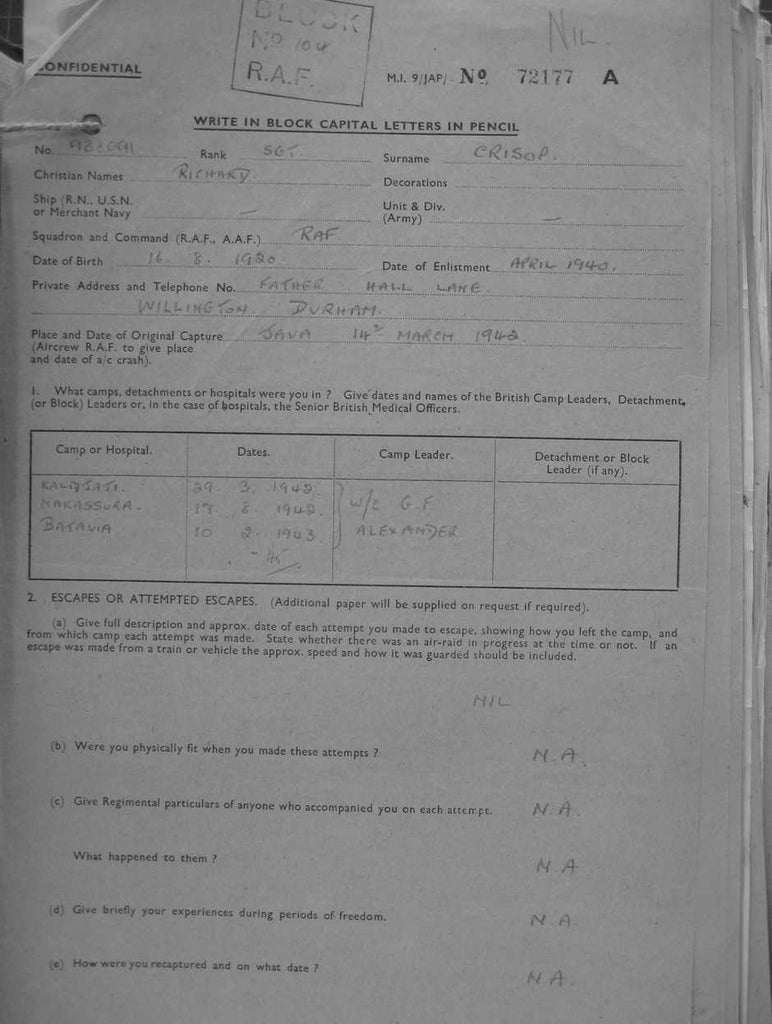 Permission was given to photograph the first page only of the Liberation Questionnaires and we could use these photographs on the COFEPOW website on the understanding that we didn’t accept any payment for viewing them.