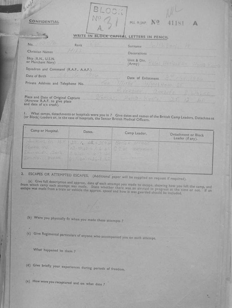 Permission was given to photograph the first page only of the Liberation Questionnaires and we could use these photographs on the COFEPOW website on the understanding that we didn’t accept any payment for viewing them.